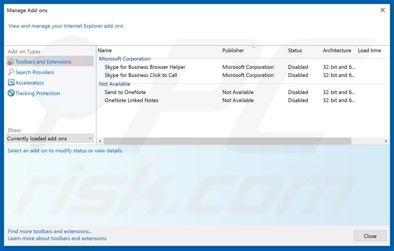 (no canto superior direito do Internet Explorer), selecione "gerenciar Complementos". Procure extensões de navegador suspeitas instaladas recentemente, selecione essas entradas e clique em "Remover".