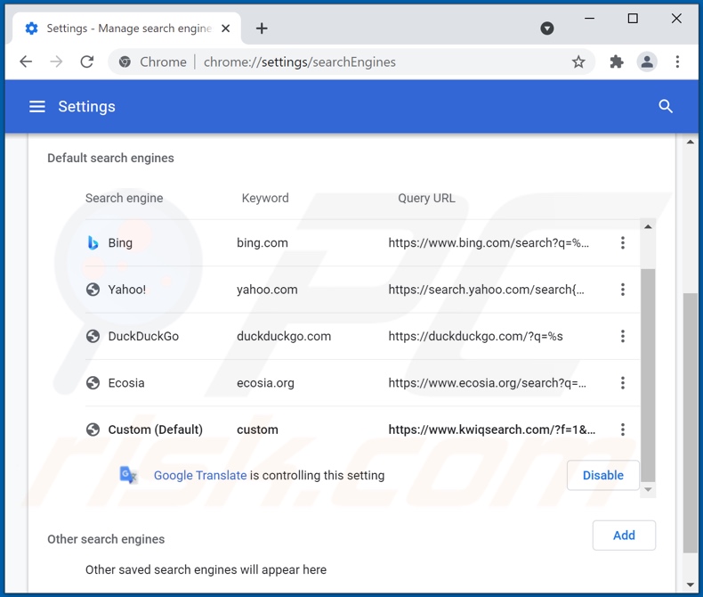 Os sequestradores de navegadores reatribuem a página inicial dos navegadores, o motor de pesquisa padrão, e os novos URLs de separadores/janelas - a endereços de pesquisa fraudulentos da web. A extensão Google Translate que promove o motor de pesquisa kwiqsearch.com também modifica os navegadores desta forma.