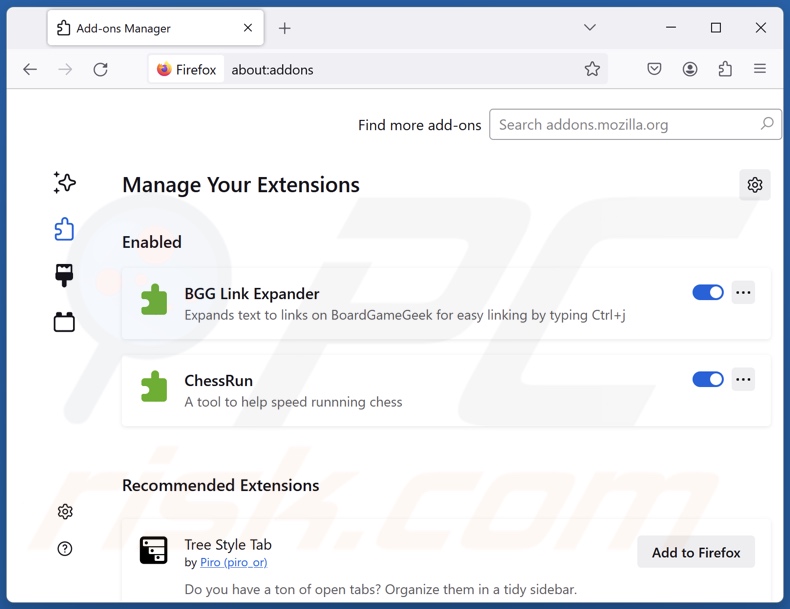 (no canto superior direito da janela principal), selecione "Add-ons e temas". Clique em "Extensões", na janela aberta localize "Lax Search", bem como todas as extensões suspeitas recentemente instaladas, clique nos três pontos e depois em "Remover".