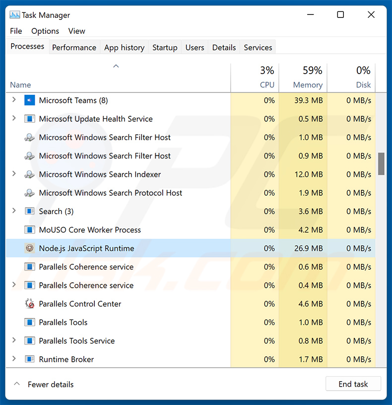 O Keep Awake disfarça-se de "Node.js JavaScript Runtime" no Gestor de Tarefas do Windows como: