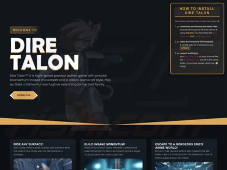 As páginas da web baseavam-se na marca e na arte de jogos reais, por exemplo, “WarHeirs” roubado de The Braves, “Dire Talon” – Project Feline, “Warstorm Fire” – Crossfire: Sierra Squad e “Baruda Quest” – Club Cooee. A maioria destes sites «oficiais» de jogos estava em português, e um número significativo de vítimas estava localizado no Brasil. Inúmeras infeções também foram detetadas nos EUA e na Turquia. Estes supostos videojogos eram promovidos no Discord.