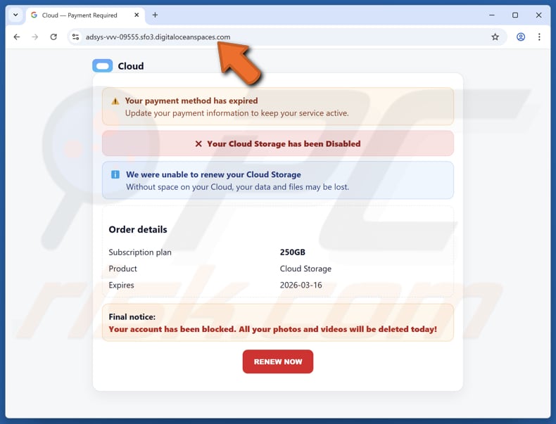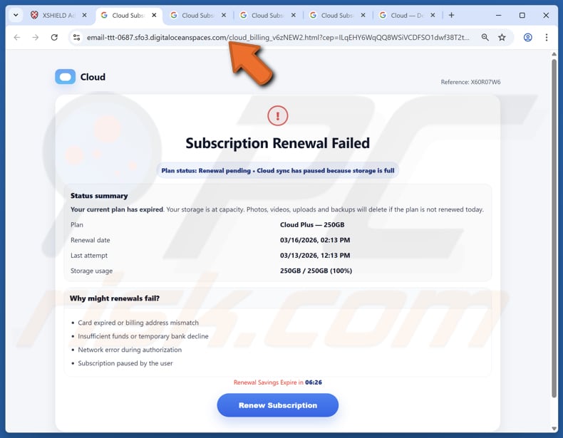 Como identificar fraudes como "Your Cloud Is Disabled"
