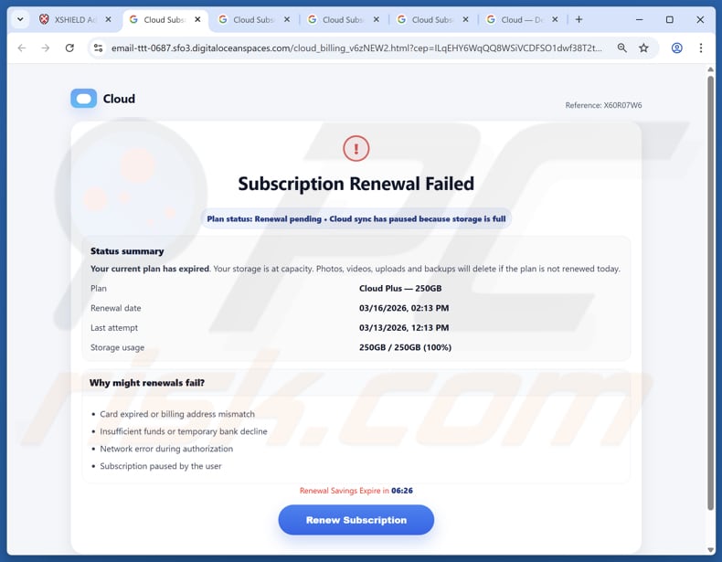 Como identificar fraudes como "Cloud Storage Renewal Failed"