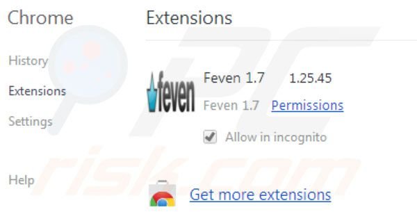 (no canto superior direito do Google Chrome) selecione "Ferramentas" e clique em "Extensões". Localize "Feven" selecione esta entrada e clique no ícone da reciclagem.