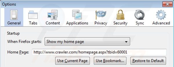 - PASSO 4. Remova Crawler.com da página inicial e motor de busca padrão do Mozilla Firefox.