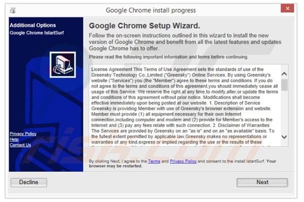 O sequestrador de navegador istartsurf.com é idêntico às variantes anteriores que redirecionam os utilizadores de Internet para istart123.com, qone8.com, v9.com, awesomehp.com, sweet-page.com, e webssearches.com. Para evitar a instalação do adware que modifica as configurações de navegador como este, tenha cuidado ao fazer o descarregamento de software gratuito, já que, hoje em dia, a maioria dos sites de descarregamento de software gratuito empregam clientes de descarregamento fraudulento, que tentam enganar os utilizadores de computador a instalar os plug-ins de navegador anunciados juntamente com o software gratuito escolhido.Na maioria dos casos, as extensões de navegador anunciadas não adicionam qualquer valor real; e, além disso, causam redirecionamentos do navegador e geram anúncios intrusivos.Ao descarregar programas gratuitos, deve inspecionar sempre estreitamente cada etapa e recusar a instalação de qualquer plug-in de navegador promovido.Ao instalar software gratuito descarregado, selecione as opções de instalação 'Avançadas' ou 'Personalizadas' - isto irá revelar qualquer adware agregado listado na instalação e permitir-lhe-á rejeitar.Os utilizadores de computador que já experienciam o redirecionamento de navegador para istartsurf.com devem usar este guia de remoção e eliminar o sequestrador de navegador istartsurf.com dos seus navegadores de Internet.