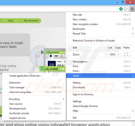 - PASSO 3. Remova os anúncios Jollywallet do Google Chrome.