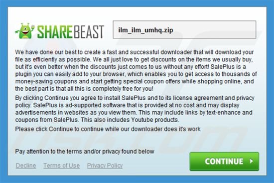 SalePlus apresenta-se como uma extensão de navegador legítimo que ajuda o utilizador a rentabilizar tempo e dinheiro ao fazer compras online. À primeira vista, esta funcionalidade parece útil, no entanto, é importante saber que o add-on SalePlus é classificado como um adware. É distribuído usando um método de marketing de software fraudulento chamado “agregação” (instalação sólida de programas adicionais juntamente com o outro software) para instalar Coolpic nos navegadores de Internet sem o consentimento dos utilizadores. Depois de SalePlus se infiltrar no seu computador, começa a gerar anúncios online intrusivos como cupões, comparação de compras, banners, etc. Esteja ciente de que, ao clicar em qualquer um deles pode levar a sites falsos que contêm sites infecciosos, e, por isso, o seu computador pode ser infectado.