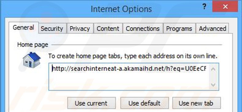(no canto superior direito do Internet Explorer), selecione "Opções da Internet", na janela aberta, remova hxxp://searchinterneat-a.akamanaihd.net e insira o domínio da sua preferência, o que vai abrir sempre que iniciar o Internet Explorer. Também pode escrever about: blank para abrir uma página em branco quando iniciar o Internet Explorer.