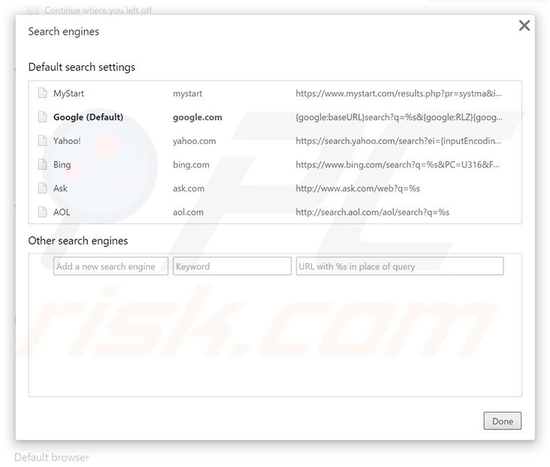 (no canto direito superior do Google Chrome), defina "Configurações", na seção da "Pesquisa", clique "Gerir Motores de Pesquisa"…, remova "mpc" e adicione ou selecione o seu domínio preferido.