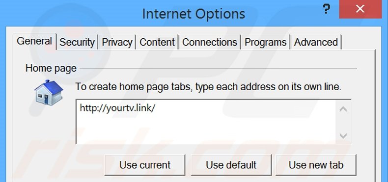 (no canto superior direito do Internet Explorer), selecione "Opções da Internet", na janela aberta, remova hxxp: //yourtv.link e insira o domínio da sua preferência, o que vai abrir sempre que iniciar o Internet Explorer. Pode também inserir sobre: blank para abrir uma página em branco quando iniciar o Internet Explorer.