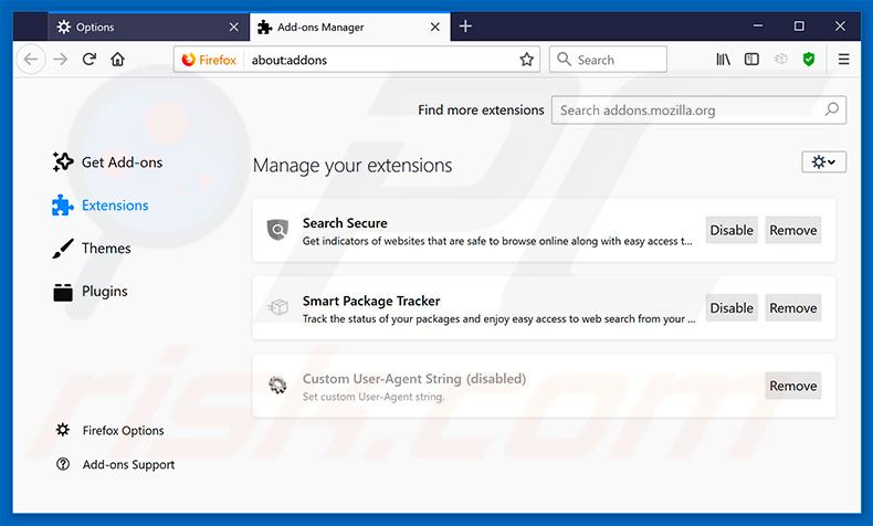 (no canto superior direito da janela principal), selecione "Complementos". Clique em "Extensões" e remover "Smart Package Tracker", bem como todos os outros plug-ins recentemente instalados no navegador.