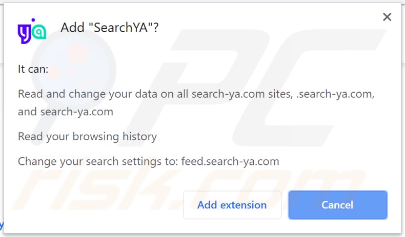 O sequestrador de navegador SearchYA solicita uma permissão para ler e alterar dados: